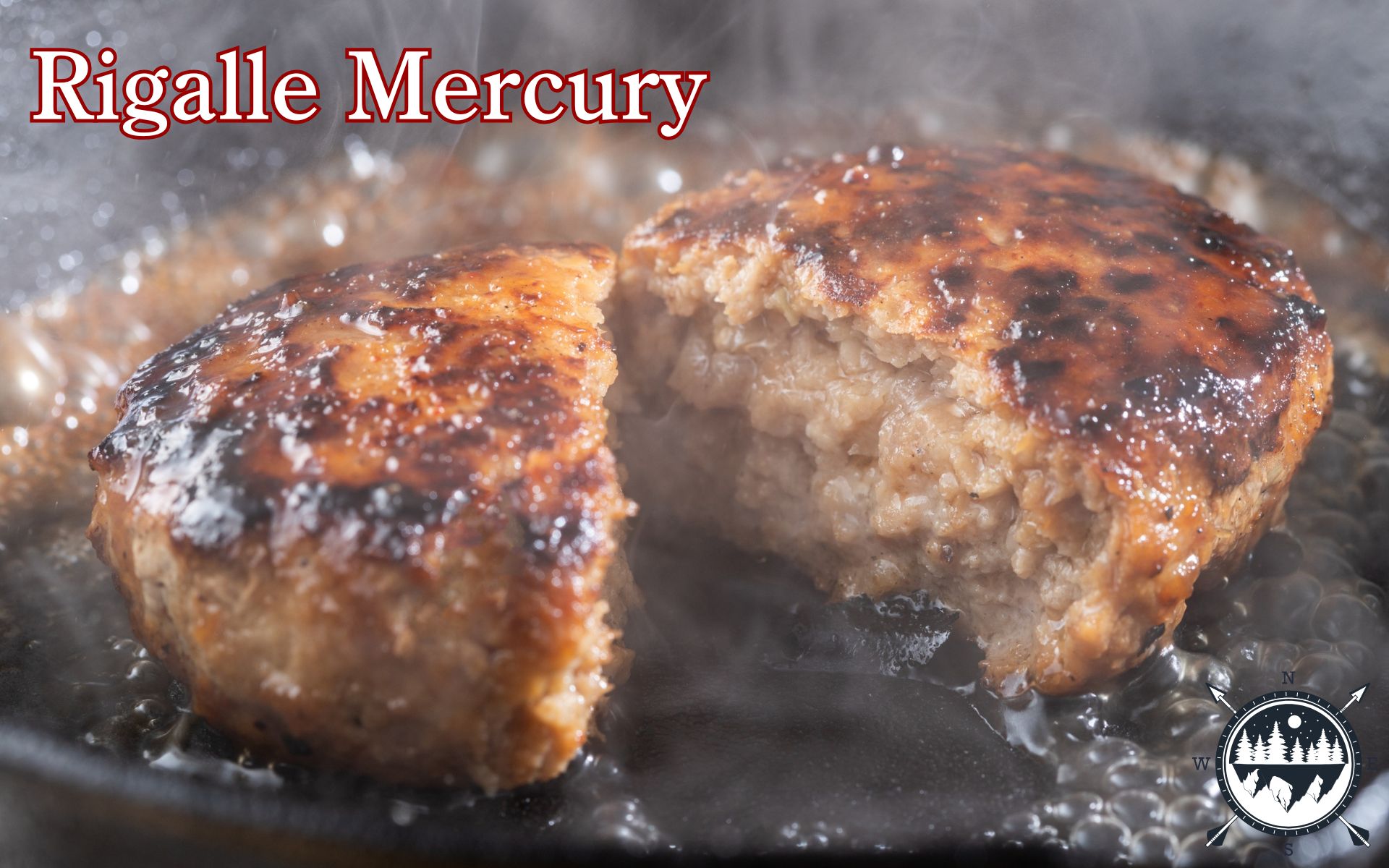 ①焼色をつける: いつものハンバーグのタネを作る。スキレットをコンロで熱し、タネを入れて強火で両面に良い焼き色をつける(中は生でOK)。