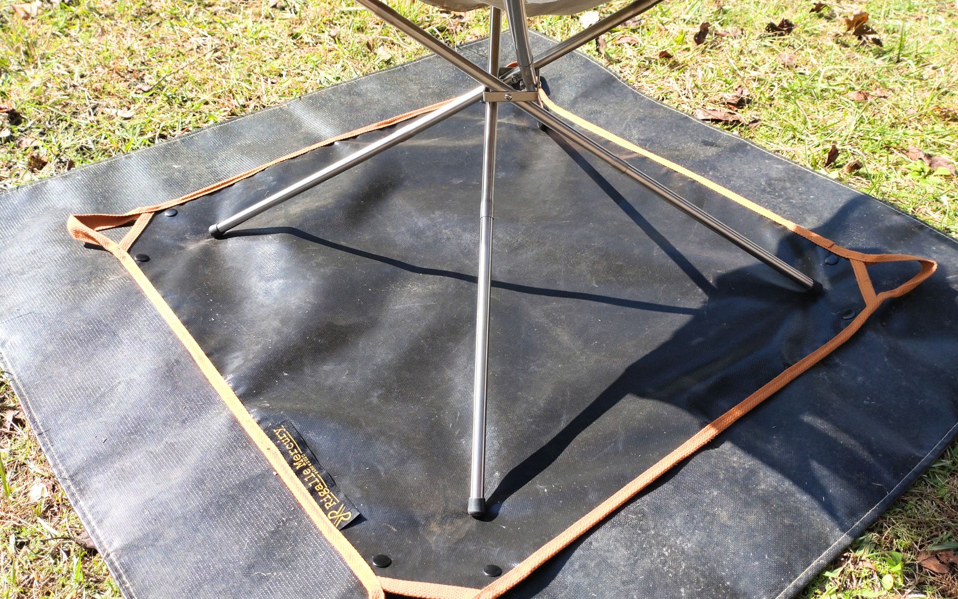 このシートは、焚き火台から発生する熱や火の粉が地面に直接触れるのを防ぐ役割を担っています。