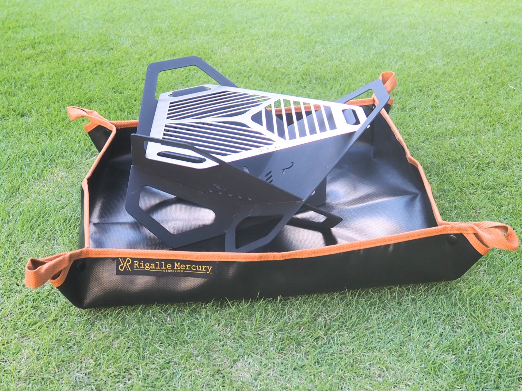 これにより、焚き火時に飛び散る火の粉や燃えた薪が直接地面に触れることを防ぎ、芝生や地面を守ることができます。